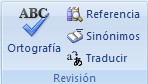 Ortografía (f7): en esta opción le podemos dar una revisión al texto y corregir los errores ortográficos. Al darle clic a la opción ortografía nos se abrirá un cuadro donde nos señala la palabra que tiene el error ortográfico y en la parte de abajo nos dará algunas opciones para corregir la palabra o en algunos casos podemos ir ala parte de la derecha y podemos darle clic en omitir.